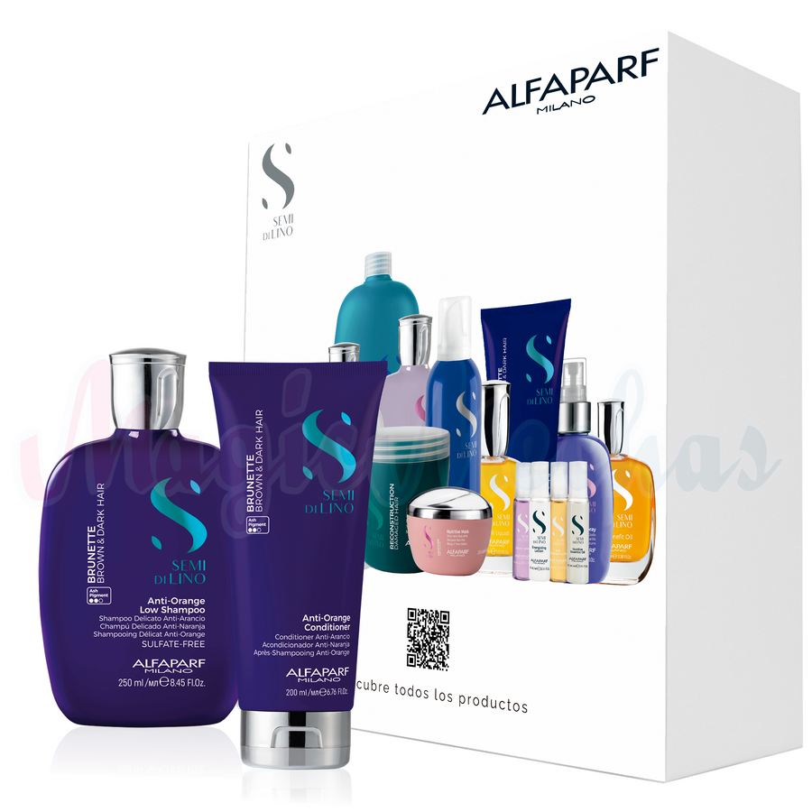 Kit Alfaparf Semi Di Lino Brunette Brown & Dark Hair Shampoo + Acondicionador Anti Naranja + Obsequio